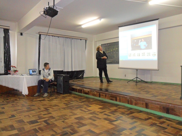 No dia 23 de maio, a professora Fátima Padilha Martins, que exerce sua profissão na Escola de Educação “Antonio Blaskowski” junto à sala do serviço de atendimento educacional especializado (SAEDE), a convite dos alunos do 4º ano do magistério da Escola “Virgilio Várzea” proferiu palestra sobre a regulamentação das leis das Libras – Língua Brasileira de Sinais – e a lei que regulamenta a profissão de interprete no estado.