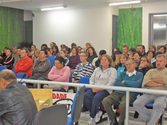 Com a intenção de pleitear melhores salários, com a atualização do plano de carreira da educação do município de Itaiópolis, pelo menos 90 professores da rede municipal tomaram as poltronas da Câmara de Vereadores, durante a última reunião, realizada da segunda-feira, 23 de maio. O vereador e presidente da Comissão de Redação, Legislação e Justiça da Casa, Alcides Nieckarz (PSB), que também é vice-presidente da mesa diretora, usou a tribuna e manifestou mais uma vez seu apoio incondicional nas reivindicações da categoria. Ao iniciar seu pronunciamento, Nieckarz agradeceu o prestigio dos professores aos trabalhos da sessão ordinária e comentou sobre a reforma do predico da Casa Legislativa realizada na sua gestão como presidente do Legislativo nos anos de 2009 – 2010. Até então o prédio oferecia 15 lugares e hoje comporta mais de 80 pessoas sentadas. Isso representa mais conforto ao público que prestigia os trabalhos do legislativo. Em seu pronunciamento, o vereador utilizou partes de um discurso da professora Amanda Gurgel, do estado do Rio Grande do Norte (RN), que durante uma audiência pública contextualizou a realidade amarga que vive os professores brasileiros no tocante a defasagem salarial. Para Alcides Nieckarz, a professora deu em poucos minutos uma verdadeira aula de cidadania a nação. O parlamentar reforçou a importância de a categoria seguir batalhando por melhores salários e, se necessário, paralisar o trabalho através de greve, que está garantida pela Constituição Federal (CF). O vereador pediu a comissão de professores encarregada de negociar com o Executivo e ao próprio Sindicato se interar junto ao Legislativo, repassando informações do andamento das negociações, se é que elas existem. Para muitos dos vereadores ainda não há muita clareza do que realmente a categoria está defendendo se trata do piso Nacional ou das atualizações anuais de valores contidas no plano de carreira da educação do município. Os vereadores solicitaram dados mais contundentes, principalmente do valor de salário pleiteado pelos professores com habilitação (licenciatura plena). O parlamentar enfatizou que todos os órgãos competentes como o próprio Executivo, Legislativo, Ministério Público e Tribunal de Contas do Estado devem ser acionados, se necessário para que o problema seja sanado. Segundo o vereador, a lei do piso mínimo da categoria no município já existe desde 2003 e até então apenas duas atualizações de valores ocorreram. O vereador se dispôs em particular, sugerindo que a Câmara não vote mais nenhum projeto do poder Executivo enquanto não for resolvida a situação dos salários dos professores. O parlamentar recebeu uma grande salva de palmas dos docentes que estavam presentes a reunião da Câmara. A vereadora Marlete Arbigaus (PP) também se pronunciou na tribuna da Casa. A parlamentar se embasou no apelo da professora do Rio Grande do Norte e pediu a valorização da classe, justificando as necessidades que o professor tem em se manter e a responsabilidade de ensinar aos alunos. A vereadora suscitou o excesso de contratações pela Prefeitura. Segundo Marlete, a Prefeitura formalizou 29 novas contratações durante o ano de 2011, no período de janeiro a maio.