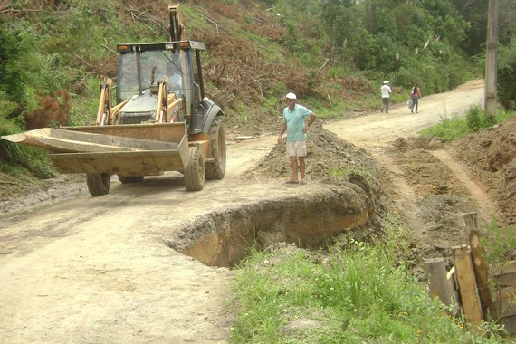 No início da semana, atendendo a reivindicação de mais de seis meses dos moradores, o departamento de Viação e Obras da Prefeitura de Itaiópolis iniciou uma operação de reconstituição da cabeceira do bueiro. A equipe de obras utilizou pranchas de eucalipto, barras de ferro e pedra “lascãoâ€, para fazer o aterro e recuperar a pista de rolamento que foi danificada pelos temporais. Para reforçar a cabeceira, os funcionários da Secretaria de Obras utilizaram barras de ferros entrelaçadas em estacadas, que foram instaladas no outro lado da rua. Com o desmoronamento da terra da cabeceira, até o cano da rede de distribuição de água tratada ficou descoberto, mas não houve interrupção no abastecimento.