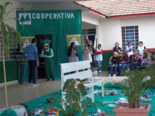 Um grupo de alunos, depois de ler a revista ilustrada do Sicoobito, com auxílio dos professores, promoveu uma peça de teatro tendo como tema central a cooperação. A atividade foi bastante promissora e envolveu estudantes e professores, que brincaram com o tema e a presença do Sicoobito.