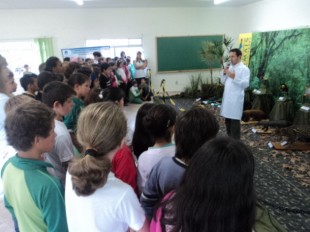 Com a intenção de buscar ajuda para o monitoramento de fauna na comunidade local, foi criado um projeto que teve como objetivo realizar mostras cientÃficas itinerantes com animais silvestres taxidermizados para trabalhar de forma prática e interdisciplinar a educação ambiental nas Escolas dos estados do Paraná e Santa Catarina. As atividades do projeto foram iniciaram-se em julho de 2011 e terminaram em julho de 2012, percorrendo 16 municÃpios que margeiam a rodovia BR-116 e contemplando 10.596 alunos. As atividades de educação ambiental realizadas nessas escolas criaram uma oportunidade para se mostrar a riqueza da fauna regional onde foi possÃvel ver 22 animais silvestres, incluindo alguns ameaçados de extinção como a Jaguatirica. Também foram distribuÃdos folders à s comunidades escolares com informações sobre como ajudar no monitoramento de fauna para se tentar evitar o atropelamento de animais na rodovia.