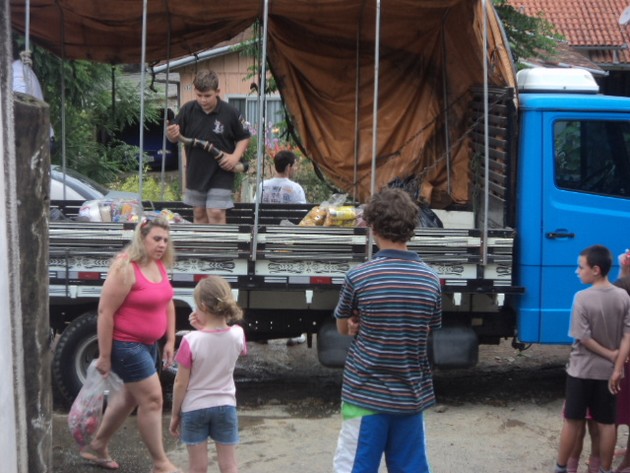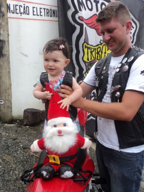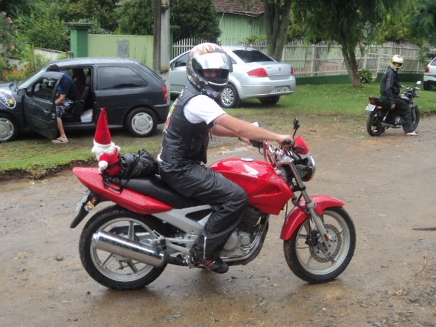 No último dia 21/12 o Motoclube Tribo da Estrada realizou mais um Natal Solidário. Os integrantes e muitos amigos fizeram a entrega de diversas cestas básicas para famÃlias carentes, além de brinquedos e doces para a criançada. Já é uma tradição a espera do Papai Noel “motociclista”. Num passeio pelas cidades de Mafra e Rio Negro – mesmo com muita chuva – os motociclistas se uniram pela solidariedade.