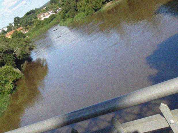 Estive passeando por Riomafra na última quinta-feira, por volta das 17h, quando avistei um objeto estranho passando sobre o rio Negro. Não fazia barulho e sua cor era azulada, mas aparentemente era o reflexo do céu. Eu fotografei com meu celular quando ele estava próximo da ponte metálica. Ele permaneceu por uns 15 segundos próximo das pontes e seguiu a extensão do rio. Eu gostaria muito de saber do que se trata, pois o objeto estava próximo da água, mas não a tocava. Ou seja, não era um barco.