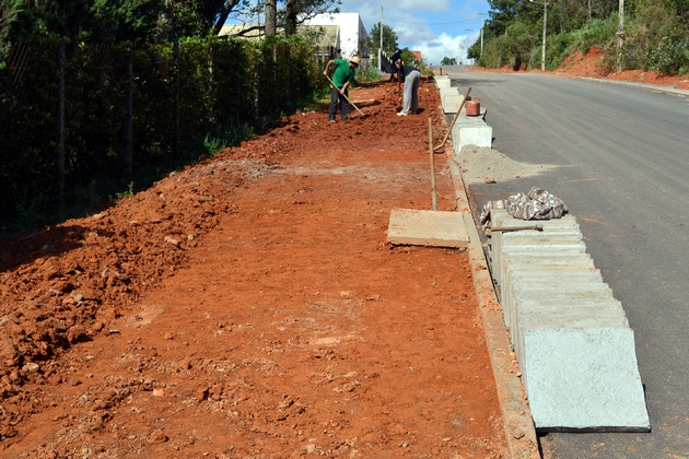 ConcluÃdas as obras de pavimentação asfáltica no municÃpio de Quitandinha, as empresas contratadas para a realização deste serviço agora dão andamento na construção das calçadas. Duas empreiteiras realizam o trabalho neste momento.