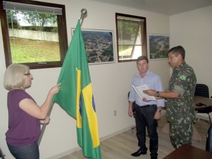Em solenidade realizada na prefeitura local, o prefeito fez o juramento de compromisso à bandeira e, em seguida, assinou o Termo de Posse desta função.