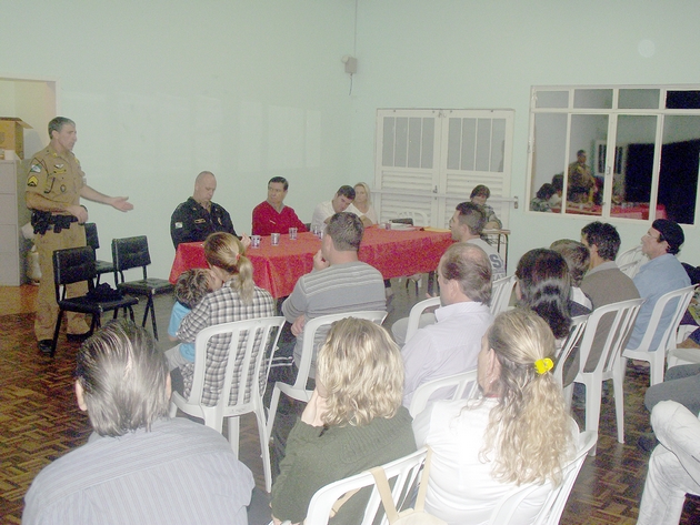 Representando o Capitão Hélio José Horning, o tenente Sérgio Struve parabenizou a comunidade pela participação nas reuniões do CONSEG e também os soldados Ricardo Steff e Diogo Walesko, que mesmo estando de folga estão sempre presentes. “Isso demonstra que estão abraçando com responsabilidade a profissão em prol da sociedadeâ€, comentou.