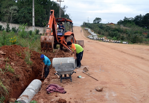 Seguem os trabalhos de novas pavimentações no município de Quitandinha. Na região do Bairro Vista Alegre, a empresa Giralda – Construtora de Obras LTDA., de Araucária, faz o manilhamento para implantação de galerias para a pavimentação da Rua do Expedicionário. No total, serão aproximadamente 3.000m² de novo asfalto.