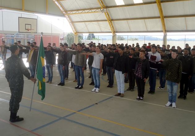 Durante o evento os compromitentes saudaram o Pavilhão Nacional, além de cantarem o Hino Nacional Brasileiro. Em seguida os jovens receberam o Certificado de Dispensa de Incorporação das autoridades presentes.