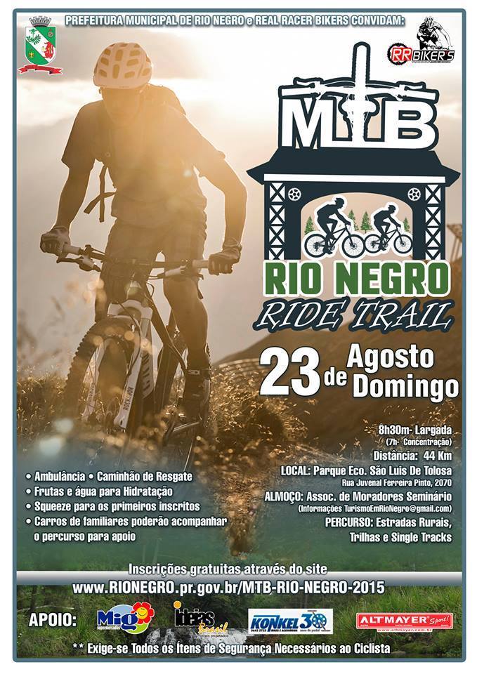 Os amantes de natureza e esporte radical podem se preparar: será realizada no dia 23 de agosto uma trilha de aproximadamente 44 km em Rio Negro. O percurso de bike será feito em entradas rurais, reflorestamento de pinus e single tracks, tendo como ponto de partida o Seminário seráfico. A concentração será às 7h e a largada às 8h30min. O almoço será a Associação de Moradores Seminário ao meio-dia.