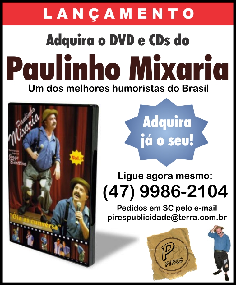 Paulinho Mixaria lança o seu primeiro DVD Publicado por Click Riomafra - 05/10/2010 - 17h19 - Publicidade -