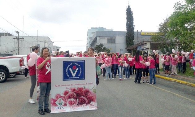 Nem o clima instável atrapalhou o movimento dos riomafrenses em favor da prevenção ao câncer de mama. Na manhã de sábado, após concentração na Praça Guilherme Abry, em Mafra, uma mancha rosa desceu a Felipe Schmidt em direção à Rio Negro, na 4ª passeata Outubro Rosa. A ação foi organizada pela Rede Feminina de Combate ao Câncer, com apoio dos municÃpios de Mafra e Rio Negro.