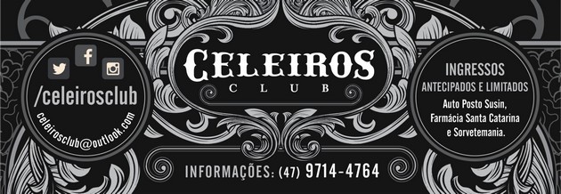 Quem é ligado em redes sociais, também pode acompanhar a programação do CELEIROS CLUB através do Instagram, Twitter e Facebook. Nas três redes, o link para os perfis da casa é /celeirosclub. Mais informações podem ser obtidas pelo telefone: (47) 9714-4764 ou e-mail: celeirosclub@outlook.com.