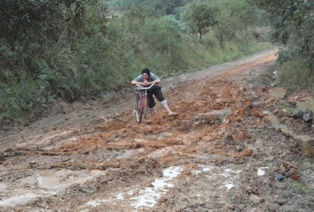Brigoni, responsável da empresa JBS em levar a ração até as propriedades e depois retirar os frangos, explicou que muitas vezes os caminhões que realizam este serviço só conseguem passar por alguns pontos críticos se forem rebocados por tratores, emprestados pela própria comunidade.