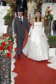 Foi assim com Danielle C. G. Ferreira, 21 anos, escrituraria e Antonio Sidinei Ferreira, conferente, 27 anos. Depois de anos de quatro anos de convÃvio e com um filho de quatro anos, disseram o sim na mesma cerimônia com outros 64 casais e assinaram os papéis do casamento civil perante o juiz de Paz, Lourival Spautz. Outros sete casais não puderam participar da cerimônia por problemas de documentação, mas nova data será agendada para que eles também possam obter a certidão de casamento.