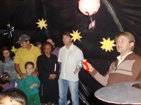 Mais de mil alunos das redes municipal, estadual e particular de ensino foram conhecer o trabalho de estudantes para a OlimpÃada Brasileira de Astronomia e Astronáutica.
