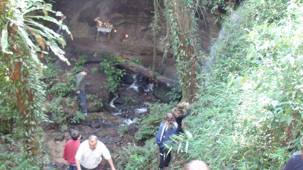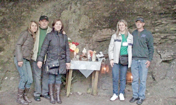 Turistas com o sr. Ico Puttkamer proprietário do local onde se encontra a Gruta Santa Emídia.