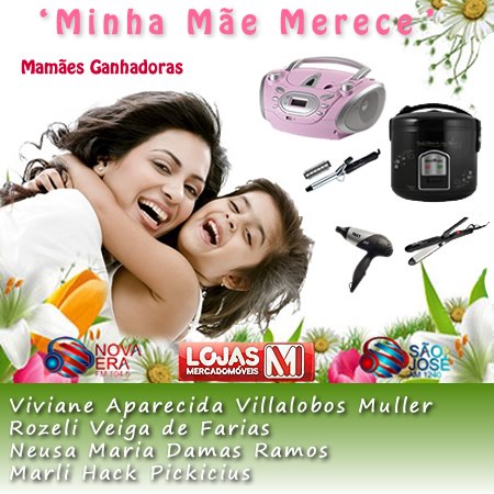 Confira o resultado do sorteio da promoção “Minha Mãe Merece” Publicado por Click Riomafra - 13/05/2013 - 17h15 As rádios São José AM e Nova Era FM realizaram a promoção “Minha Mãe Merece“, em comemoração ao Dia das Mães. Veja quem foram as ganhadoras: - Publicidade -