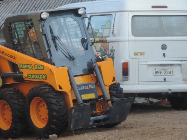 Sobre o Bobcat, bem como uma Kombi que faz limpeza de ruas, também estar neste local todos os dias, e até durante os finais de semana, Gutemberg explicou que esta equipe que limpa as ruas, começa o serviço à s 5h da manhã, antes do comércio abrir, faz limpeza de todas as ruas centrais do municÃpio, por esta razão o veÃculo fica na casa do servidor.