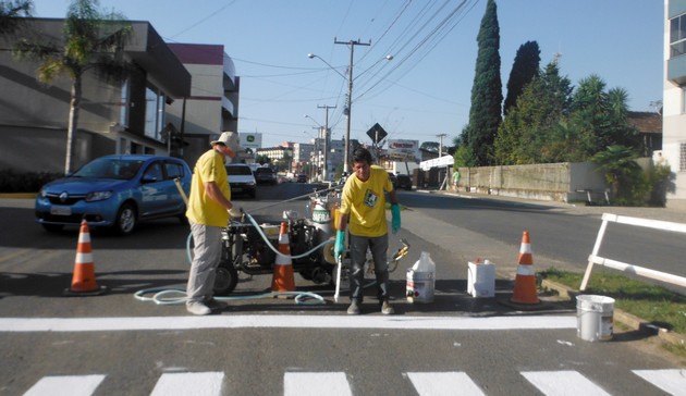 Na última terça e quarta-feira, 22 e 23, o Departamento Trânsito de Mafra (DETRAMM), iniciou a revitalização das faixas de pedestre das ruas Nereu Ramos e Frederico Heyse, que se encontravam apagadas devido a ações do tempo.