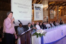 A professora Maria de Lourdes Brehmer, secretária de Educação de Canoinhas e presidente do Colegiado de secretários Municipais de Educação, falou que chegou o esperado momento da construção da diretriz curricular. “Ele será produzido por nós, professores efetivos do Planalto Norte Catarinense”, declarou salientando que a idéia dessa construção vem sendo amadurecida há cerca de 02 anos. “A região reúne cerca de 50 mil crianças que frequentam as escolas públicas municipais, que tem as mesmas necessidades e dificuldades e hoje vivemos um momento muito importante para que possamos valorizar a qualidade da educação da região”. Agradeceu a todos os professores municipais que são “partícipes e sonhadores” dessa qualidade de ensino. “Vamos escrever com caneta de ouro a história da educação dessa qualidade de ensino”, concluiu.