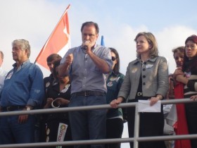 Durante o seu discurso, a candidata ao senado Gleisi Hoffmann reforçou o seu apoio a Osmar Dias para Governador do Estado. “Aqui no Paraná nós não podemos correr o risco de eleger um candidato que não esteja alinhado com as polÃticas do presidente Lula, que não conheça a realidade do nosso Estado. O Osmar Dias tem um profundo conhecimento das polÃticas do Governo do Lula, conhece bem o Paraná e estará alinhado com o Governo de Dilma que será a continuação do Governo do Lula.â€