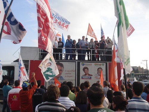 Tendo inÃcio à s 16 horas, o evento reuniu um grande público em frente à Afubra, no bairro Bom Jesus. Entre os presentes estavam os vereadores da cidade de Rio Negro João Alves, Aniceto Machado e Marcelo Alves, que apóiam Osmar Dias, prefeitos de cidades vizinhas, candidatos a deputado estadual, além das lideranças locais, como os presidentes dos partidos coligados.