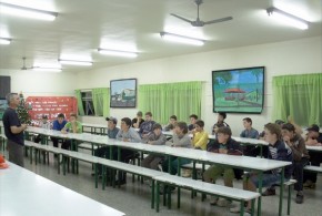 Durante a noite, juntamente com professores, funcionários e estagiárias, que orientaram e participaram das atividades, assistiram a palestra sobre “salvamento e sobrevivência na selva” que foi ministrada pelo Tenente Almir Oliveira, enfermeiro do exército.