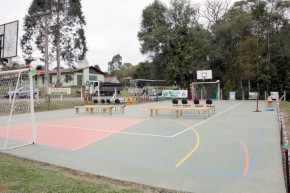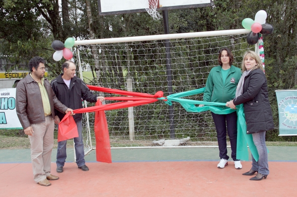 A comunidade de Butiazinho de Cima recebeu na tarde de quinta-feira, 15, mais uma melhoria na escola local, iniciando as inaugurações na área da educação no total de 5 unidades – EMEB Colônia Ruthes, CEIM Restinga, EMEB Augusta Vitória e EMEF Avencal São Sebastião, além da escola do Butiazinho de Cima. O Executivo mafrense inaugurou a quadra esportiva construída com recursos próprios, no valor de R$ 43.562,00. No ano passado a escola recebeu duas salas de aula novas, além da ampliação da área coberta.