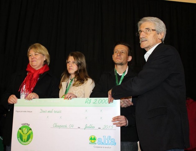 O evento, que comemorava a passagem do Dia Internacional do Cooperativismo, além de reunir os grupos vencedores do concurso em uma apresentação aos produtores integrantes da cooperativa Alfa, também foi marcado pela entrega da premiação do concurso, dessa forma, além de erguer o troféu de campeão, a vitória proporcionou à escola São Lourenço o recebimento de um prêmio no valor de R$ 2 mil, entregue à diretora, Noeli de Jesus Xavier Lila. Os alunos participantes, foram agraciados com certificados e medalhas, que se somaram às aulas de teatro ministradas pelos atores do grupo de teatro “VoeVerá”, Jovane dos Santos e Marineuse Bet, já no último dia 1º de julho, nas dependências da Universidade do Contestado(UnC), cabendo ainda ao autor e diretor da peça, o professor Fábio Reimão de Mello, o recebimento de um notebook.