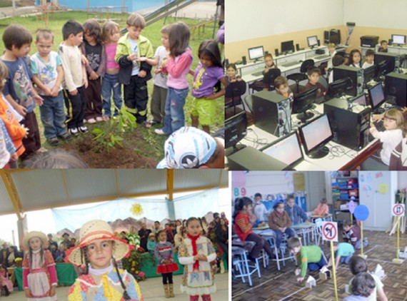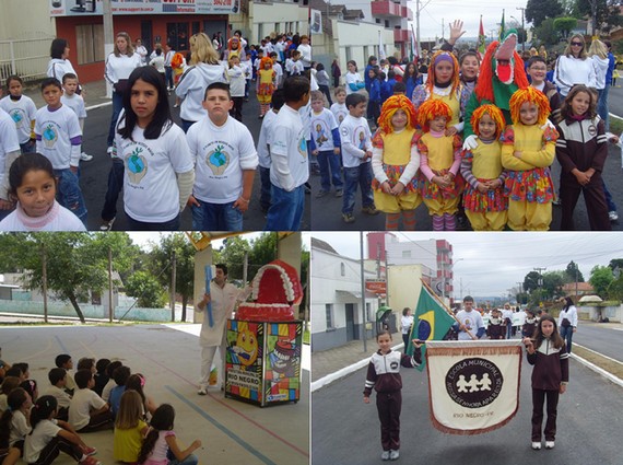 “Nossa Escola é assim… Como uma grande família feliz; Muitas crianças….;Uma diferente da outra; Umas louras, outras morenas; Umas grandes, outras pequenas; As gordinhas e as magrinhas; As brancas e as neguinhas; Tem meninos, tem meninas; Cada qual com seus desejos; Suas vontades, seus anseios; Nossa escola é cidadã; Os alunos, professores, pais; Diretora, auxiliares, merendeira; Fazem nossa comunidade; Onde não importa a idade; O que na verdade importa; É a paz e a união…” (Augusta Schimitd)