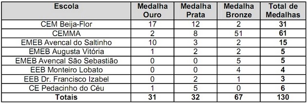 Destaca-se o empenho dos alunos e professores e demais educadores envolvidos nesta atividade, sendo gratificante ver o desempenho intelectual dos alunos ser premiado. Portanto, seja a escola pública ou particular, o incentivo por parte dos professores é fundamental para conquista não só de medalhas, mas de um sentimento maior: orgulho.