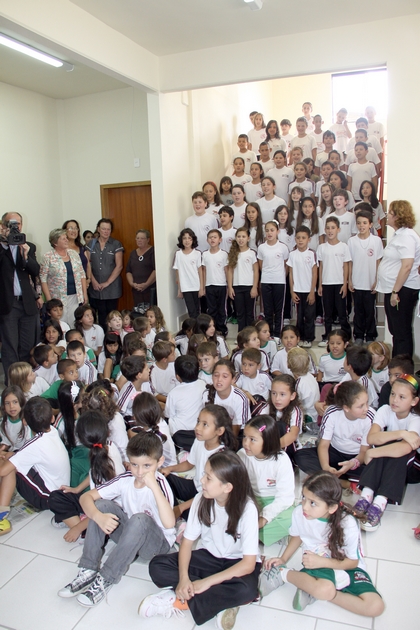 João Raimundo Colombo teceu agradecimentos e elogios à diretora da Escola Mário Goeldner e toda sua equipe, pelo trabalho realizado junto aos alunos. Citou que “todos queremos uma sociedade mais desenvolvida e mais justa e é a sala de aula que está o exemplo de maior igualdade da sociedade”.