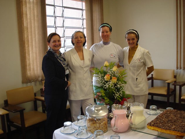 O mês dedicado à enfermagem também envolveu atividades de confraternização e trocas de experiências. No dia 12, todos os profissionais de enfermagem participaram de um café da manhã preparado especialmente para eles pela equipe de nutrição do HSVP. “Foi uma excelente oportunidade para que equipes que trabalham em diferentes turnos pudessem interagir. Nosso objetivo foi o de criar uma oportunidade de diálogo entre os profissionais fora do dia a dia de trabalhoâ€, explica a enfermeira do Controle de Infecção Hospitalar, Denise Dallagnol. A celebração destinada à enfermagem envolveu ainda, entre os dias 19 e 21 de maio, a relização de palestras com a temática Motivação e Comprometimento,ministrada pelo Doutor Sidney Schllosmacher; Motivação, abordada pela psicóloga Vitória Maria Friguetto Hirt e Cuidados com a Pele e Apresentação Pessoal, ministrada pela consultora Cleide Mara Domingues Skrenski. Já a sexta-feira, 23, foi dedicada aos cuidados com a saúde e beleza dos profissionais em enfermagem. Durante todo o dia, a enfermagem puderam fazer uma massagem com profissionais fisioterapeutas, exames de glicemia e sinais vitais, maquiagem e obter dicas para uma alimentação saudável.