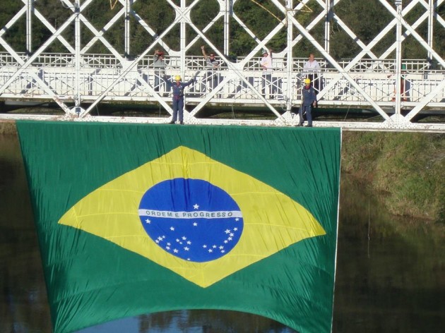 Só faltou posicionarem a bandeira no centro da ponte.