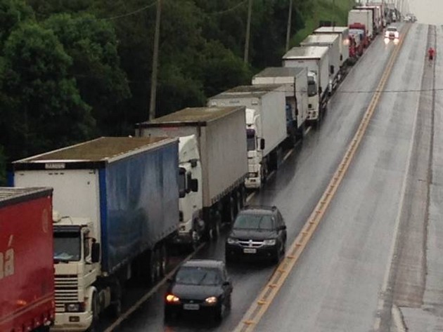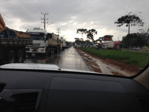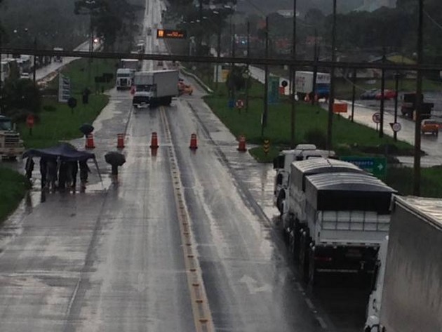 A chuva não interrompeu a manifestação dos caminhoneiros em Mafra nesta terça-feira. O protesto novamente ocorre na BR-116 no Km 7. Como ocorre em diversas cidades do país, os manifestantes protestam contra o aumento dos combustíveis e pedem melhorias nas estradas, além de outras reivindicações. O término do protesto está previsto para as 20h. Há passagem livre para os demais veículos.