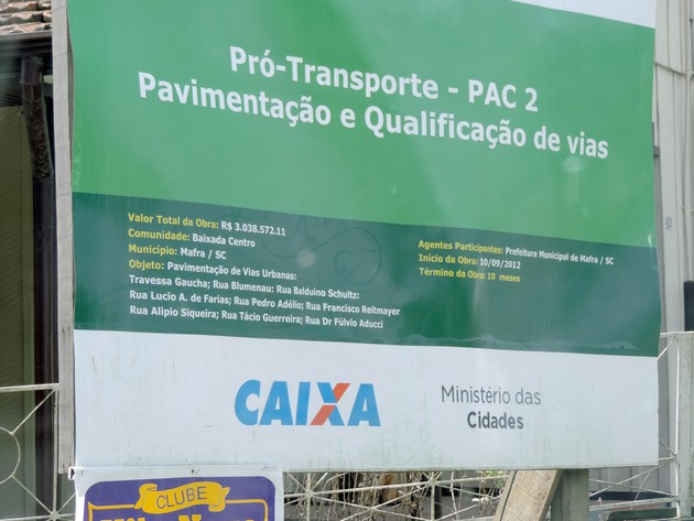 Em 10 de março de 2012 publicamos uma matéria sobre a inserção de Mafra no Programa de Aceleração do Crescimento 2 (PAC 2), onde o município receberia investimentos na ordem de R$ 8,7 milhões para realização de obras e serviços em 21 ruas do município.