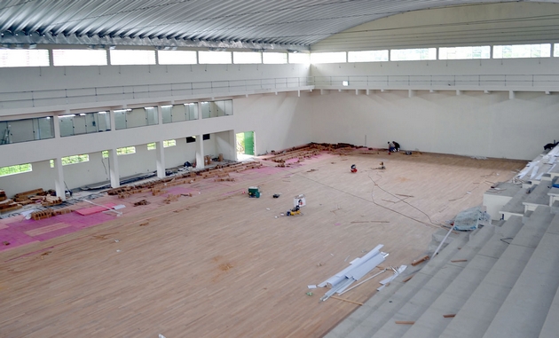 As obras continuam em ritmo normal, com a colocação do piso flutuante da quadra, que demanda muita cautela, por ser um material delicado. “O piso está quase todo colocado, daí poderemos dar continuidade no restante das obras, que é a pintura e demais acabamentos”, explicou o engenheiro. Ele disse ainda que neste estágio, as ações não são tão aparentes quanto no início. “Quando estamos no começo da obra, as ações são bem mais aparentes. Neste momento de acabamento, não é possível perceber muitas alterações, mas o ritmo de trabalho continua o mesmo, ou até maior”, completou.