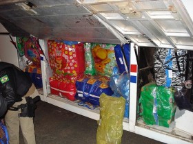 A Polテュcia Rodoviテ。ria Federal abordou na madrugada do dia 10, por volta das 02h30, na rodovia BR-116, entroncamento com a BR-280, um テエnibus de turismo, placas BWC-5383 de Sテ」o Paulo. No テエnibus os policiais apreenderam diversas mercadorias de origem estrangeira sem o devido desembaraテァo aduaneiro.