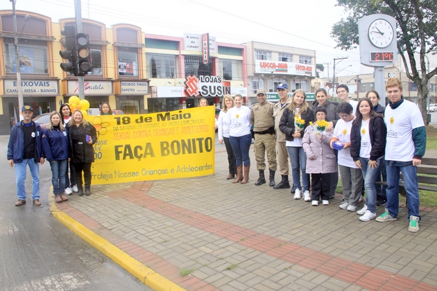 Durante o dia, a Secretaria da Criança e Ação Social, através do CREAS, com apoio de órgãos como Polícia Militar, Civil e Rodoviária Federal, Conselho Tutelar, Mafra em Forma, Conselho Comunitário de Segurança, PETI e Pró-jovem, além da Tranorte, Fina Festa, FMM Engenharia, Djonatan DR Audiovisual e Grupo Giro se mobilizaram para entregar a motoristas e pedestres o símbolo da campanha deste ano – uma flor amarela, contendo o slogan “Faça bonito. Proteja nossas crianças e adolescentes”. Além da flor, foram entregues saco de lixo e porta documentos para carro e ainda um adesivo contendo o disque 100 (Disque Direitos Humanos).
