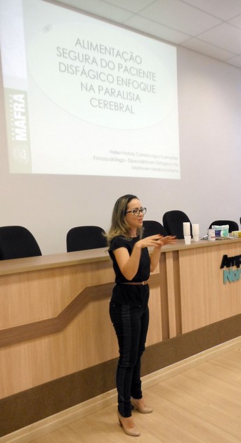 Aconteceu na última quarta-feira 18, palestra sobre “Alimentação segura do paciente disfágico enfoque na paralisia cerebral”, para profissionais da rede municipal de ensino. Mafra possui atualmente cerca de 50 alunos incluídos e 5 com dificuldades relacionados à disfagia matriculados nas escolas do município.