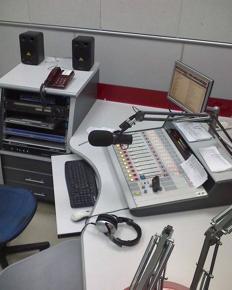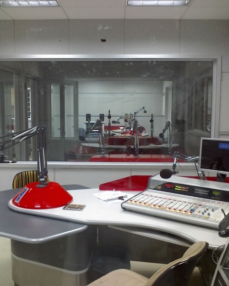 Atual estúdio da São José AM, com vista para os estúdios de entrevista (ao centro) e da Nova Era FM (ao fundo)