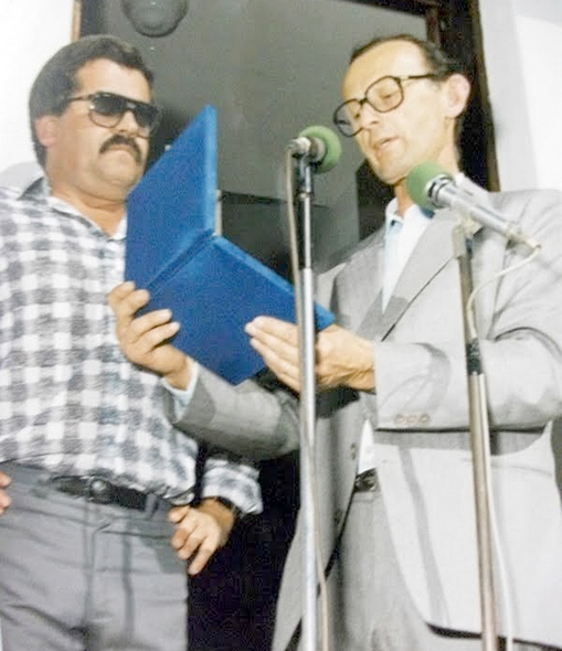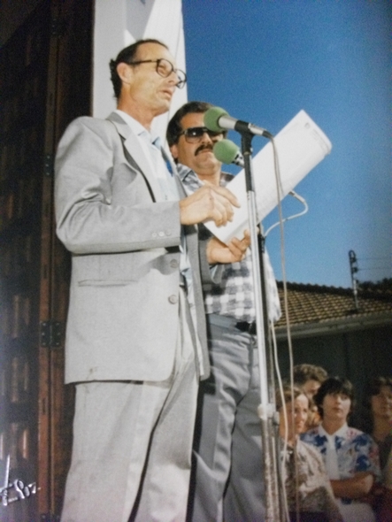 Durante o cerimonial de inauguração, o jornalista Jota Sartori, ao lado do então diretor da emissora, Augustinho Vinotti