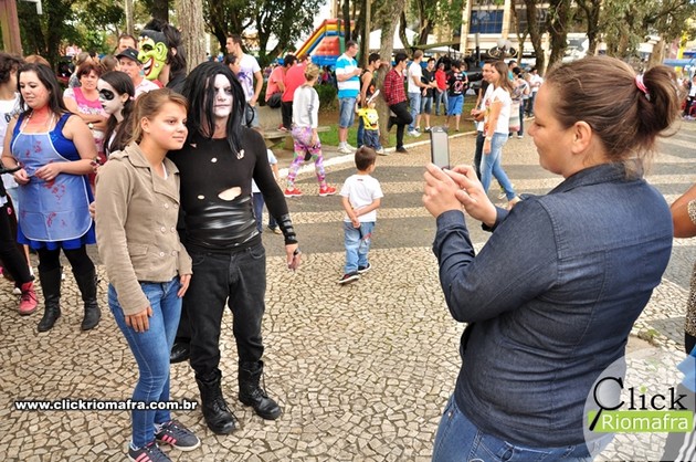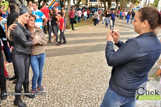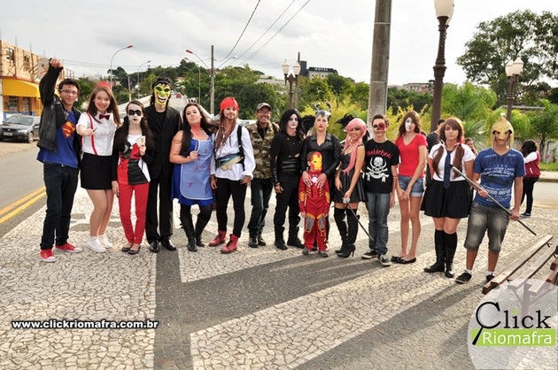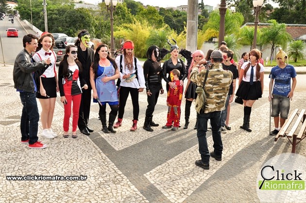 No último domingo (22) fãs de games, desenhos e filmes de ficção científica realizaram o 1º Encontro de Cosplayers de Riomafra. O grupo se reuniu às 15h30 na Praça Lauro Müller, em Mafra, e seguiu até a Praça João Pessoa, onde ocorria a tradicional Feira de Páscoa da cidade de Rio Negro.