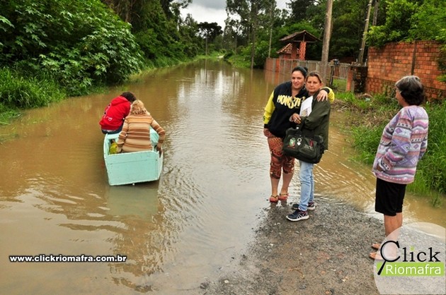 A Defesa Civil de Mafra informa que devido às chuvas constantes que estão caindo em Riomafra desde quinta-feira, solicita-se que os moradores das áreas de risco fiquem em alerta com o nível do rio Negro e do rio da Lança. Às 17h deste domingo (11) o nível do rio Negro registrado foi de 6,19 m acima do seu leito normal, sendo considerado nível crítico 7,50 m.