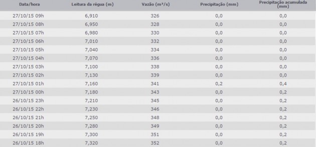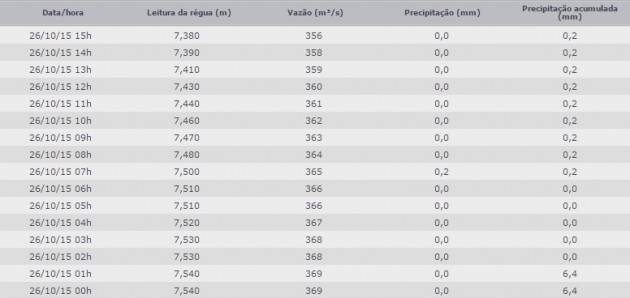 Ultima atualização as 22:00 de domingo (11) com 6,41 acima do leito normal.