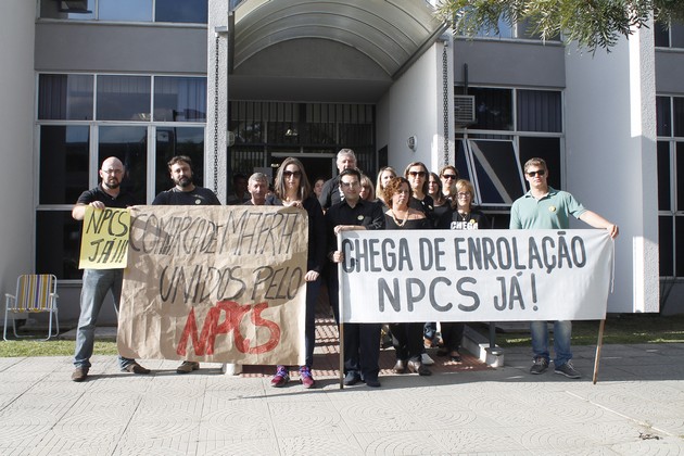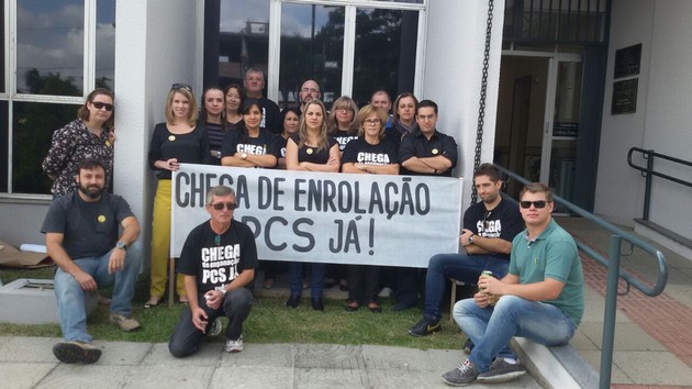 Servidores do poder judiciário em Mafra aderiram à greve estadual, iniciada nesta quinta-feira (09). Os funcionários ficaram reunidos do lado de fora do fórum com faixas e cartazes pedindo um novo plano de cargos e carreiras assim como também colocaram cartazes em todos os setores da unidade.