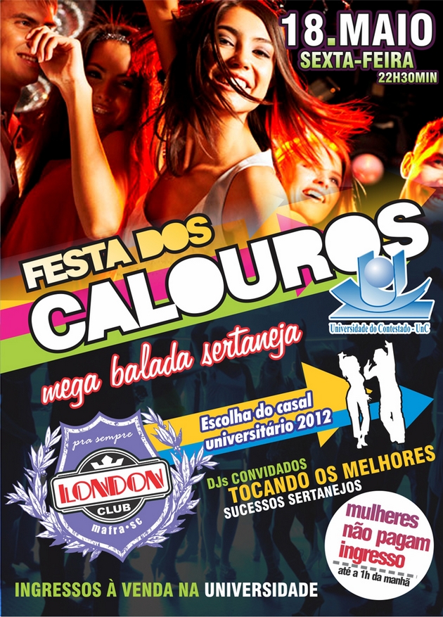 UnC realiza na próxima sexta-feira a Festa dos Calouros Publicado por Gazeta de Riomafra - 16/05/2012 - 01h00 - Publicidade -
