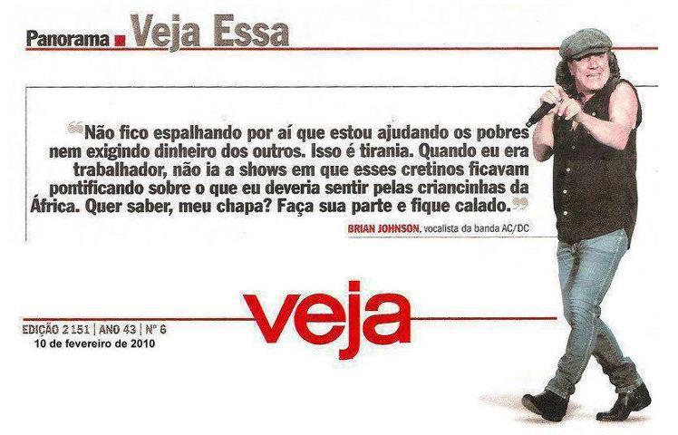 Como disse Brian Johnson (Vocalista do AC/DC) Publicado por Cris Fagundes - 21/03/2012 - 15h32 Como já dizia meu avô, “Toda boa ação que é utilizada em beneficio próprio, ou para se autopromover, perde seu valor” - Publicidade -