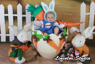 E o pequeno Guilherme de coelhinho, em cenário de páscoa da Lincolor Studio, por Joni Lindner.