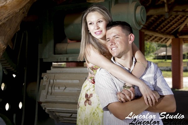 Hoje, o dia é deles, Johnattan Fernandes e Geisa de Cassia Brambilla, logo mais diante do altar da Igreja Bom Jesus da Coluna, fotos de Joni Lindner – Lincolor Studio.